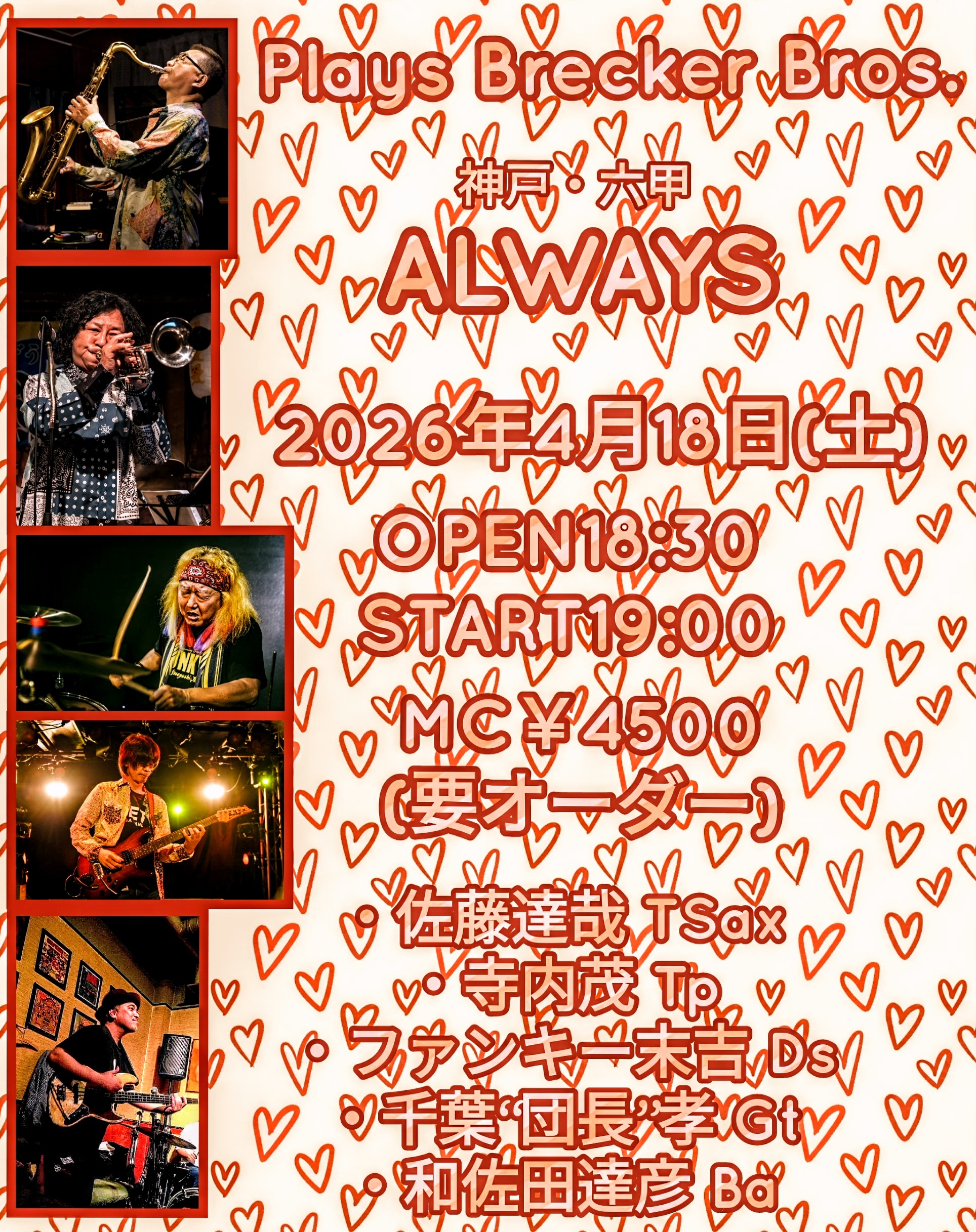ロックバンド「爆風スランプ」のメンバーや、元「Orquesta De La Luz」のメンバー、原信夫#&♭、Eric宮城のビッグバンドのメンバーなど、各々が様々なシーンで活躍するアーティスト達によるbrecker brothersトリビュートバンド